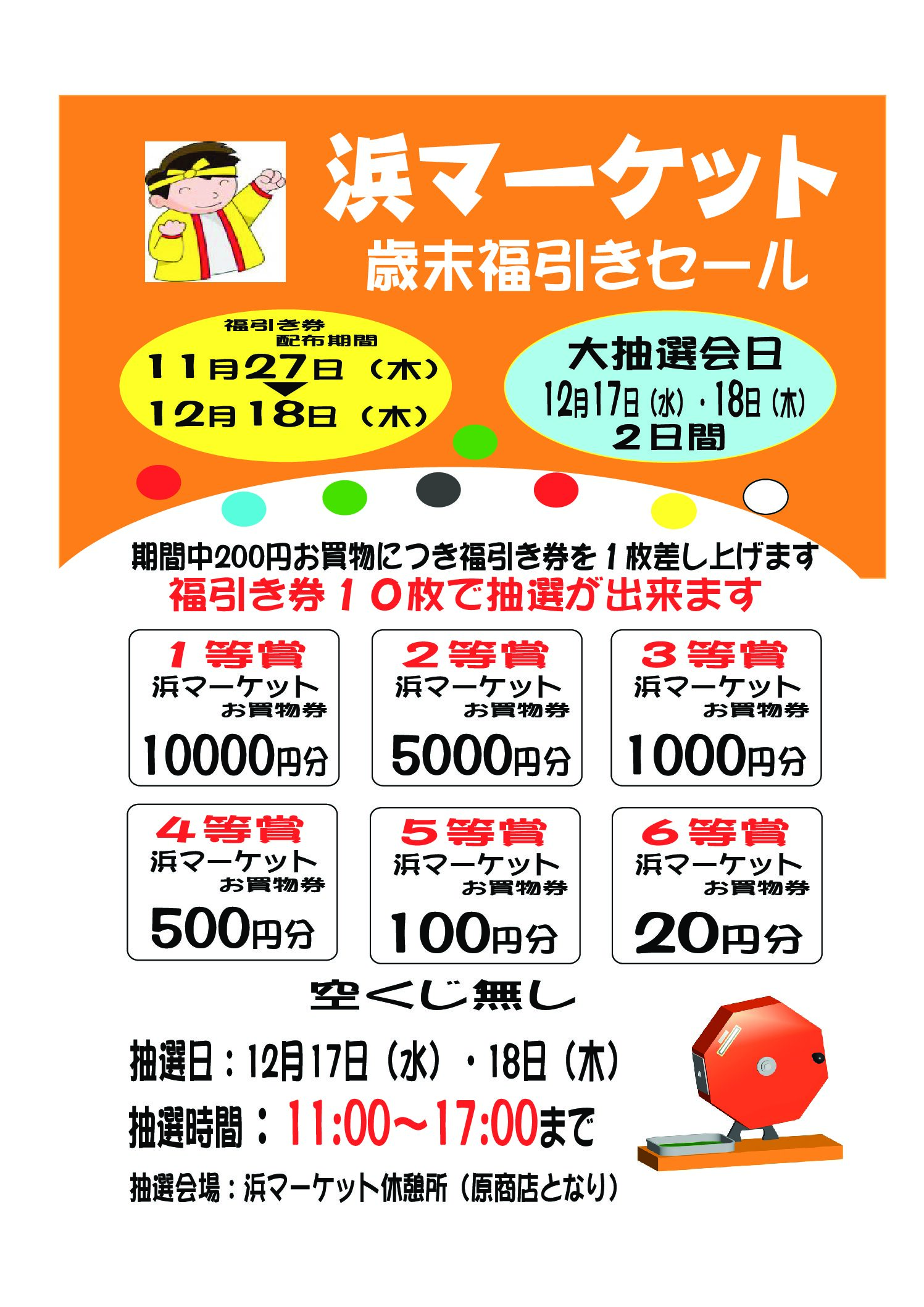 「特売日」の他にもフリーマーケットや福引、スタンプラリー 、商店街宝くじなど、浜マーケットでは沢山のイベントを開催中!