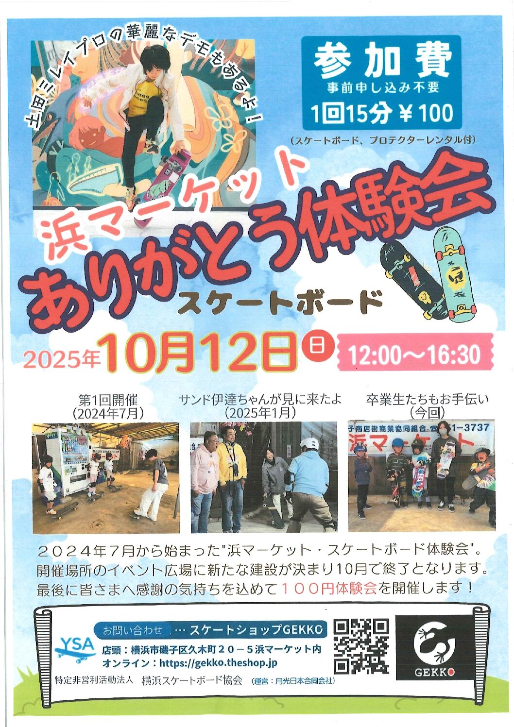 10月もやります、スケボー教室。 今回最後になります。 みな様のお越しをお待ちしております 10月12日(日)12:00~16:30 予約なしで、随時参加OKです。