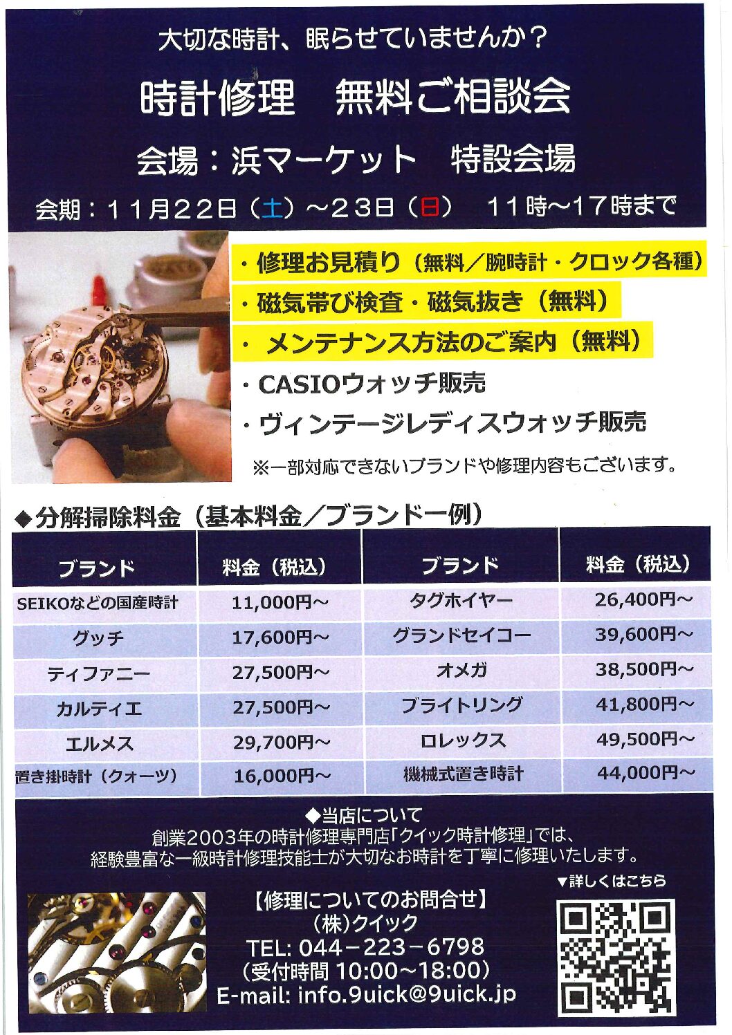 大切な腕時計、眠らせていませんか? 時計修理 出張無料相談会 開催概要 日時: 2025年11月22日(土)・23日(日) 10:00~17:00 こんな方におすすめ • 動かなくなった大切な時計をお持ちの方 • オーバ […]